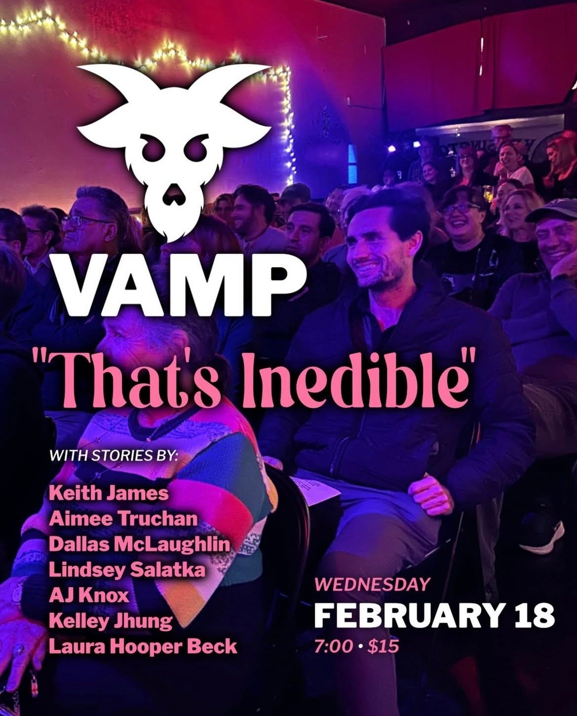 Come be a part of my cringey big night at VAMP, a “highly produced multi-media storytelling showcase,” happening one week from today. The show starts at 7pm but it sold out last month so get there by 6pm to secure a seat.